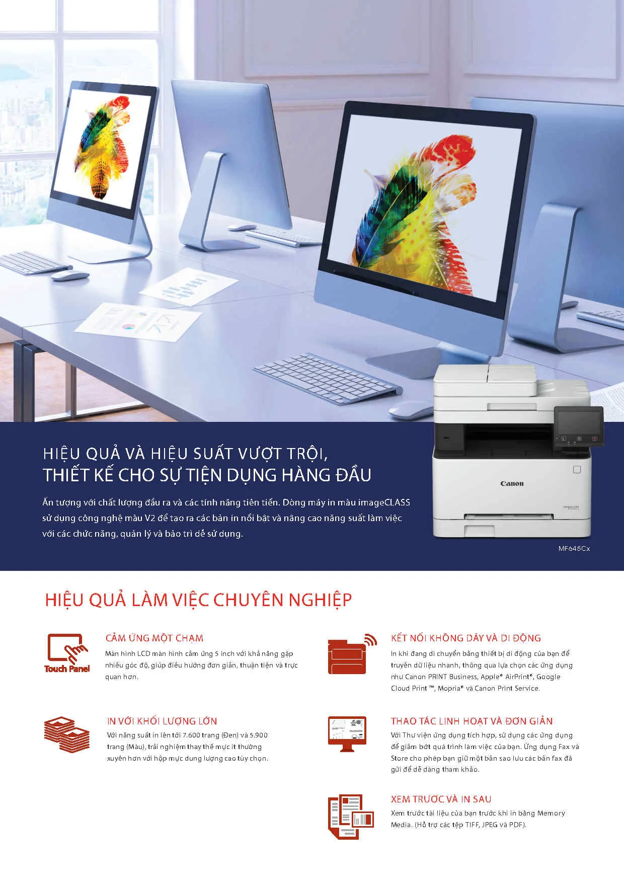 Canon imageCLASS MF645Cx là máy in đa chức năng laser màu được thiết kế cho môi trường văn phòng chuyên nghiệp, nơi cần xử lý tài liệu màu với chất lượng ổn định, vận hành linh hoạt và chi phí bảo trì hợp lý.