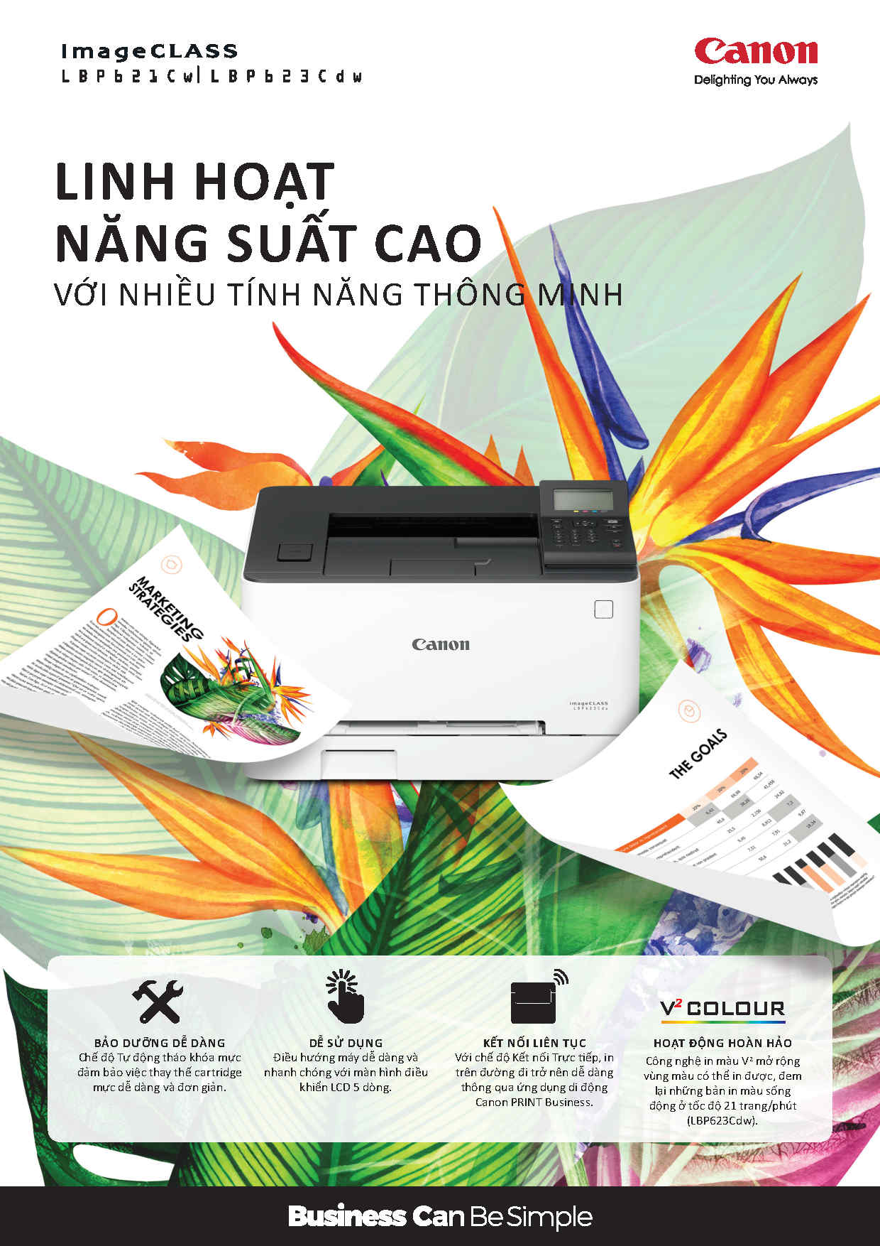 Canon imageCLASS LBP621CW là dòng máy in laser màu được thiết kế cho môi trường văn phòng hiện đại, nơi yêu cầu chất lượng in màu ổn định, tốc độ xử lý nhanh và khả năng kết nối linh hoạt.