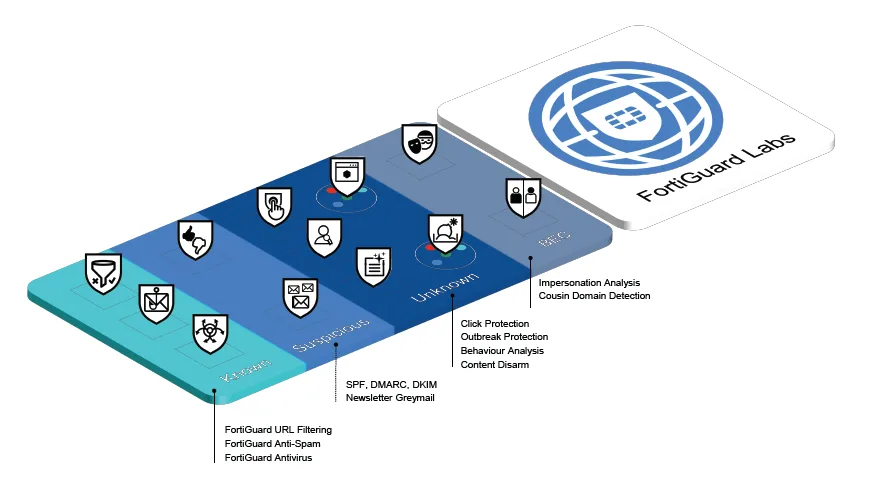 Thay vì chỉ lọc spam, FortiMail xây dựng một lớp phòng thủ đa tầng, kiểm tra email ở nhiều góc độ khác nhau ngay khi email vừa xuất hiện: