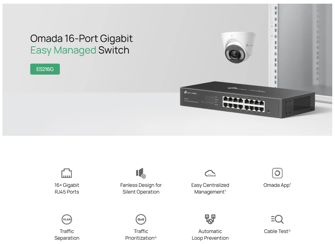 TP-Link ES216G (Mới ra mắt) là lựa chọn hoàn hảo cho doanh nghiệp SMB, văn phòng, trung tâm đào tạo hoặc hệ thống camera giám sát, mang lại tốc độ Gigabit ổn định, quản lý Cloud thông minh và thiết kế bền bỉ, êm ái. Đây là dòng switch đáng tin cậy giúp tối ưu hiệu suất và đơn giản hóa quản trị mạng trong mọi môi trường làm việc hiện đại.