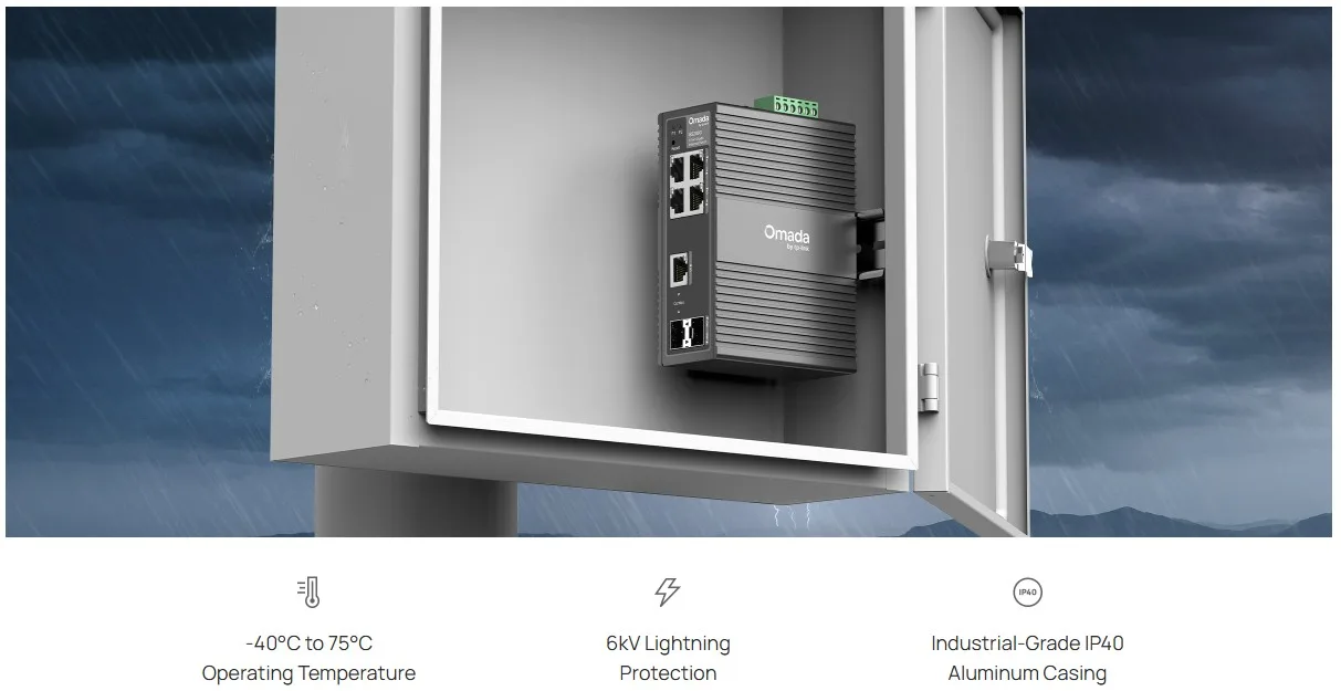 Trong các hệ thống giám sát, nhà máy hoặc trung tâm dữ liệu, điều kiện môi trường khắc nghiệt đòi hỏi thiết bị mạng có độ ổn định cao và hoạt động liên tục. TP-Link IES206G được thiết kế chuyên biệt cho môi trường công nghiệp, với khả năng vận hành ổn định trong dải nhiệt từ -40°C đến 75°C, chống sét 6kV, và quản lý thông minh qua Omada Cloud – đáp ứng mọi yêu cầu của hạ tầng mạng doanh nghiệp hiện đại.