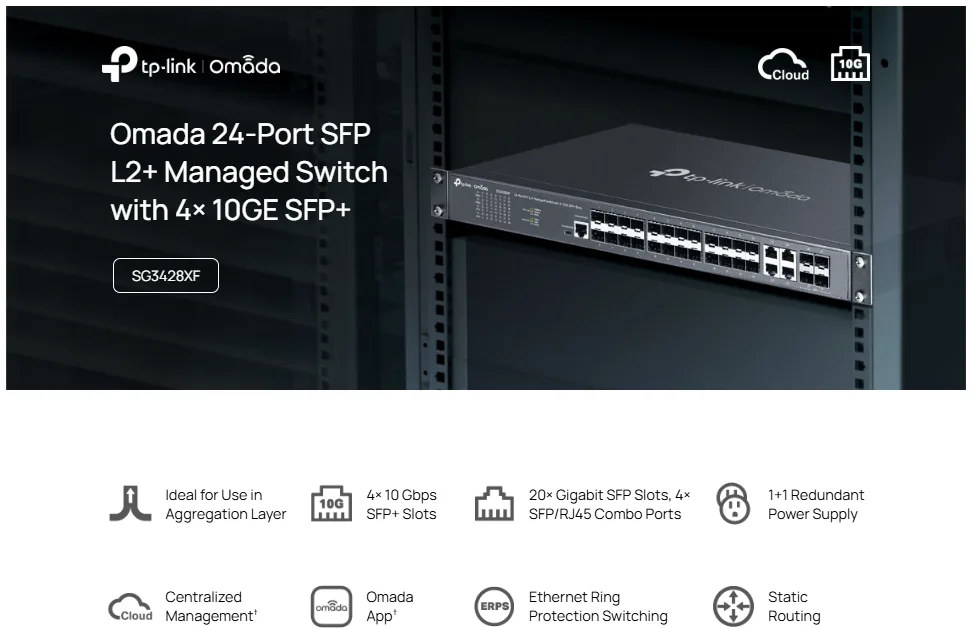 TP-Link SG3428XF là giải pháp backbone quang L2+ lý tưởng, kết hợp băng thông 10G, nguồn kép và Cloud SDN quản lý thông minh, đáp ứng tiêu chuẩn mạng doanh nghiệp và ISP hiện đại.