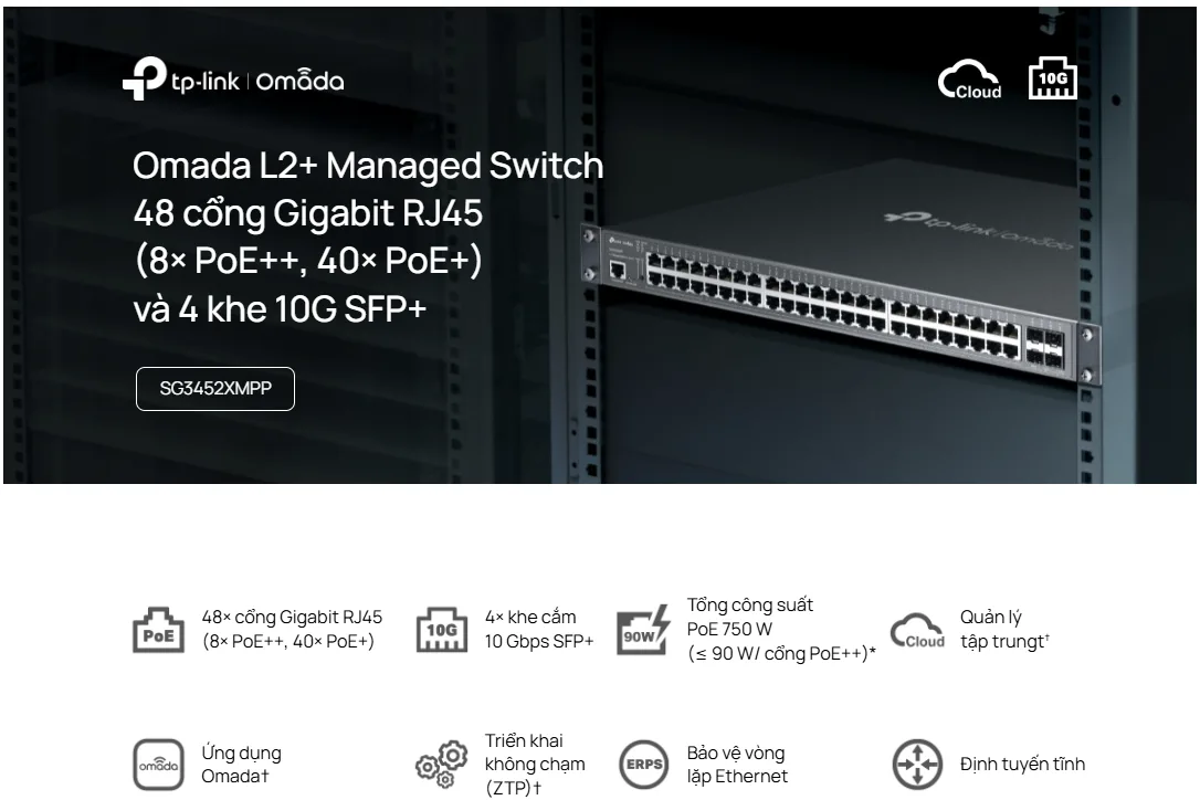- ✅ Quản lý linh hoạt qua Omada Cloud, web GUI, CLI, SNMP, RMON