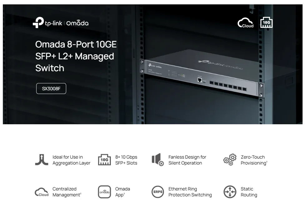 TP-Link SX3008F mang đến sức mạnh của hạ tầng 10G trong một thiết bị nhỏ gọn, thông minh và đáng tin cậy.