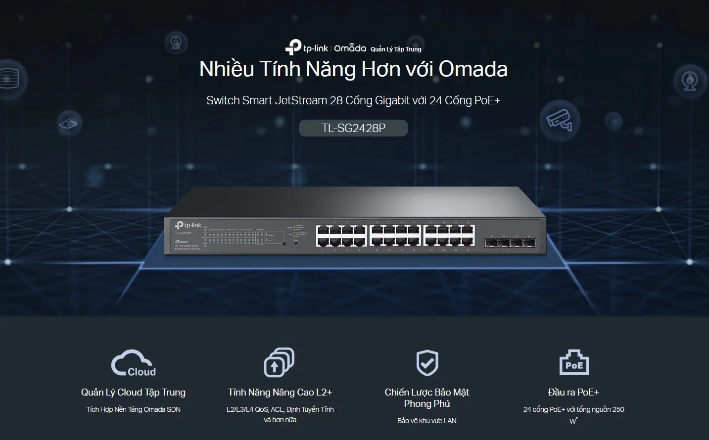 Với khả năng cấp nguồn PoE mạnh mẽ 250W, tính năng Static Routing L2+, bảo mật cao và khả năng quản lý Cloud thông minh qua Omada SDN, TP-Link TL-SG2428P là giải pháp mạng toàn diện cho doanh nghiệp vừa và lớn, đảm bảo hiệu suất, độ tin cậy và khả năng mở rộng lâu dài.